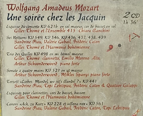 W.A.MOZART : UNE SOIREE CHEZ LES JACQUIN / GILLES THOME AND HARMONIE BOHEMIENNE. 2CD SET