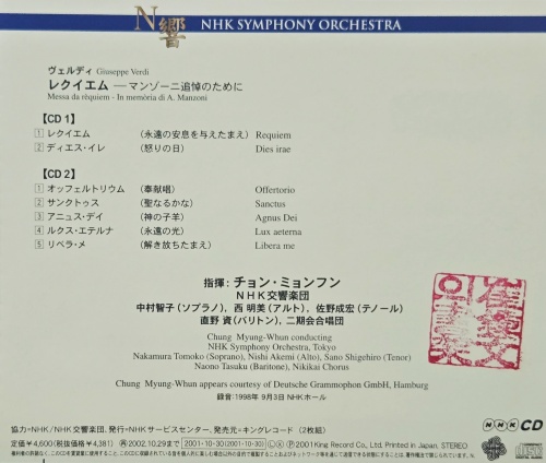 VERDI : MESSA DA REQUIEM-IN MEMORIA DI A MANZONI / CHUNG MYUNG-WHUN. Á¤¸íÈÆ. 2CD SET