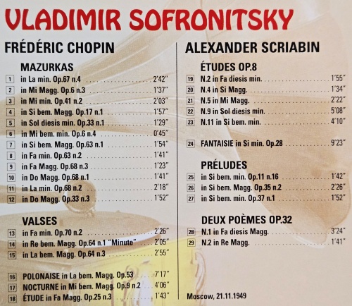 F.CHOPIN-MAZURKAS. VALSES / A.SCRIABIN-ETUDES. PRELUDES - VLADIMIR SOFRONITSKY