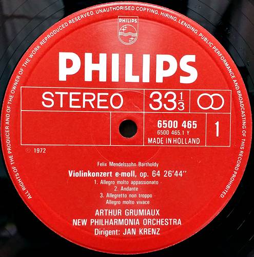 MENDELSSOHN. VIOLIN CONCERTO E-MOL UND D-MOLL / ARTUUR GRUMIAUX