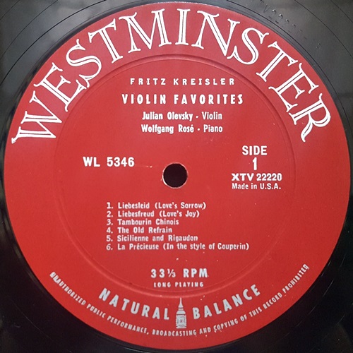 KREISLER VIOLIN FAVORITES / JULIAN OLEVSKY
