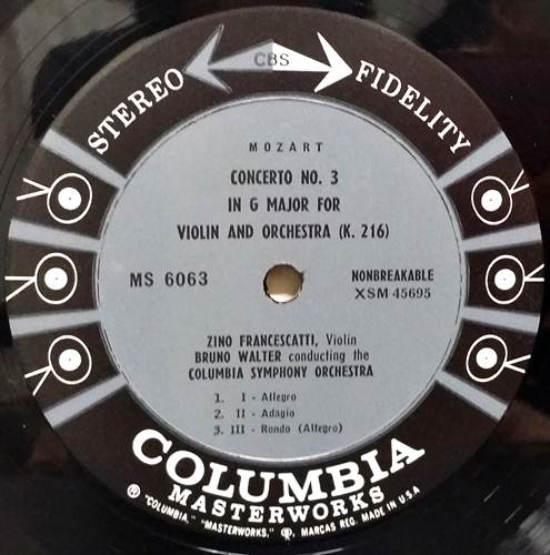 MOZART : VIOLIN CONCERTOS / FRANCESCATTI. BRUNO WALTER