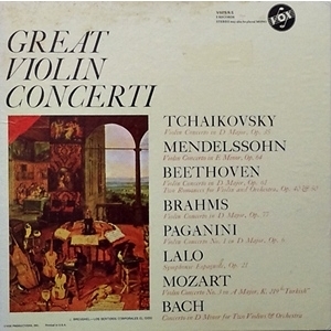 GREAT VIOLIN CONCERTI : TCHAIKOVSKY. MENDELSSOHN. BEETHOVEN. BRAHMS. PAGANINI. LALO. MOZART. BACH. 5LP BOX SET