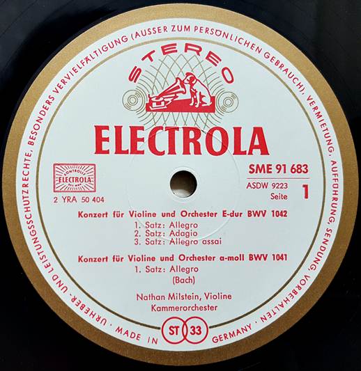 J.S.BACH : VIOLINKONZERTE BWV 1042 UND BWV 1041, BWV1043 / NATHAN MILSTEIN. ERICA MORINI