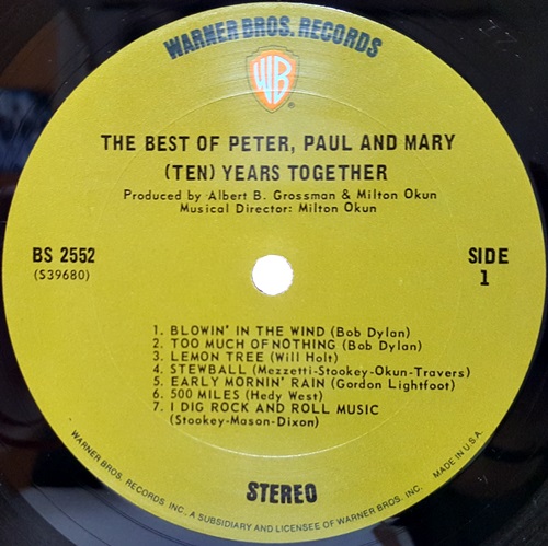 PETER,PAUL AND MARY / THE BEST OF PETER,PAUL AND MARY-(TEN)YEARS TOGETHER