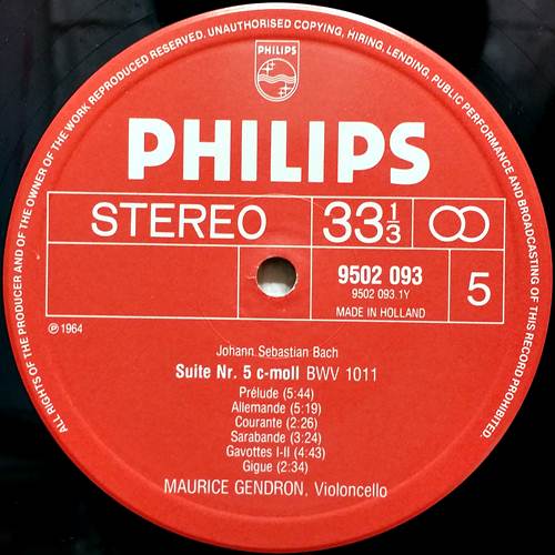 J.S. BACH : 6 SUITE BWV 1007 - 1012 PER VIOLONCELLO SOLO / MAURICE GENDRON. 3LP BOX
