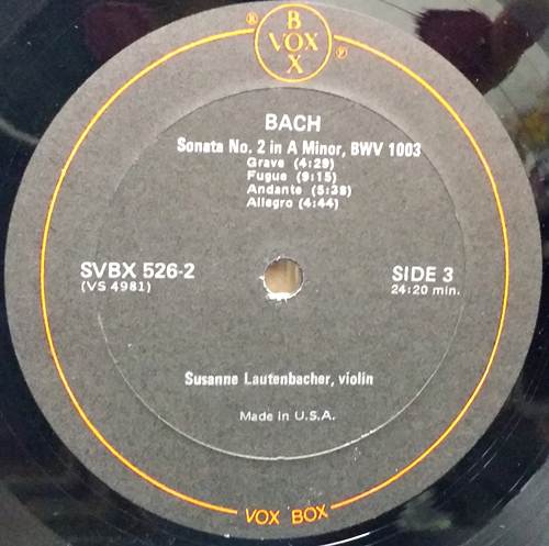 J.S. BACH : 3 SONATAS & 3 PARTITAS FOR VIOLIN UNACCOMPANIED-COMPLETE / SUSANNE LAUTENBACHER. 3LP BOX SET